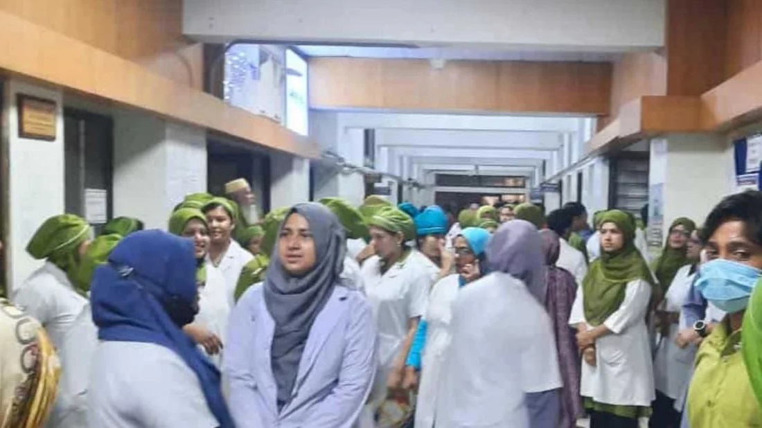 এর প্রতিবাদে বৃহস্পতিবার সকাল থেকে থেকে কর্মবিরতিতে যান নার্সরা। সকালে হাসপাতালের পরিচালকের কার্যালয়ের সামনে এই ঘটনার প্রতিবাদের স্লোগান দিয়ে বিক্ষোভ দেখিয়েছেন তারা।