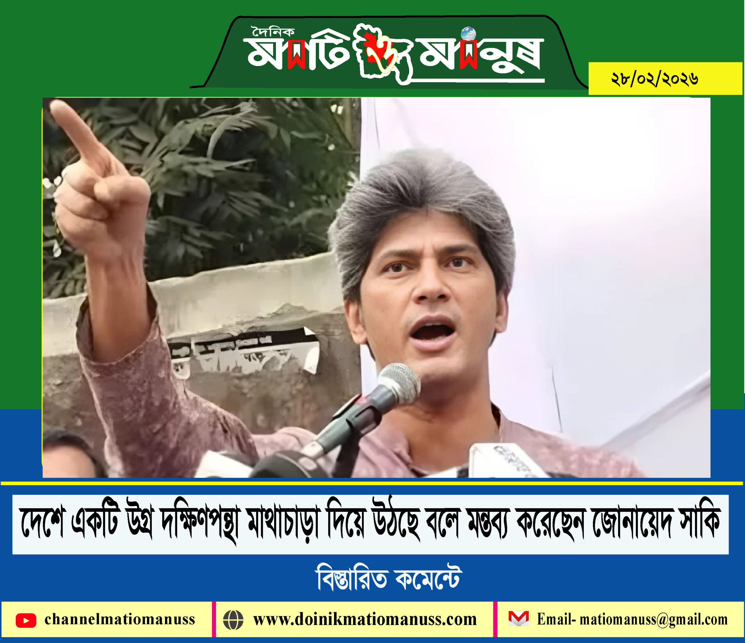 দেশে একটি উগ্র দক্ষিণপন্থা মাথাচাড়া দিয়ে উঠছে বলে মন্তব্য করেছেন জোনায়েদ সাকি