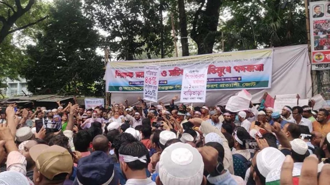 পাঁচ শতাংশ বাড়িভাড়া দেওয়ার প্রজ্ঞাপন প্রত্যাখান করে আন্দোলন চালিয়ে যাওয়ার ঘোষণা দিয়েছেন এমপিওভুক্ত শিক্ষক-কর্মচারীরা।