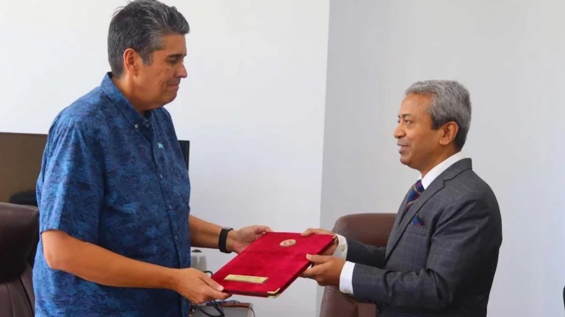 ওশেনিয়ার দ্বীপরাষ্ট্র পালাউয়ের রাষ্ট্রপতি সুরাঙ্গেল এস হুইপস জুনিয়রের কাছে পরিচয়পত্র পেশ করেছেন দেশটিতে নিযুক্ত বাংলাদেশের অনাবাসিক রাষ্ট্রদূত মুহম্মদ সারওয়ার মাহমুদ।