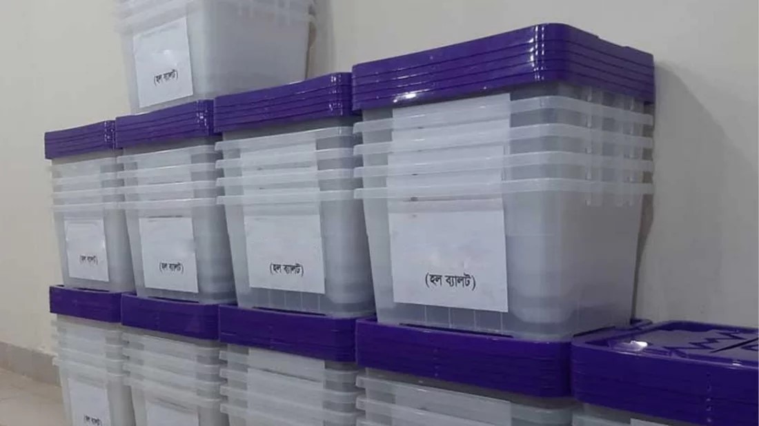 রাকসু নির্বাচনের ব্যালট বাক্স কঠোর নিরাপত্তায় কেন্দ্রে পৌঁছেছে