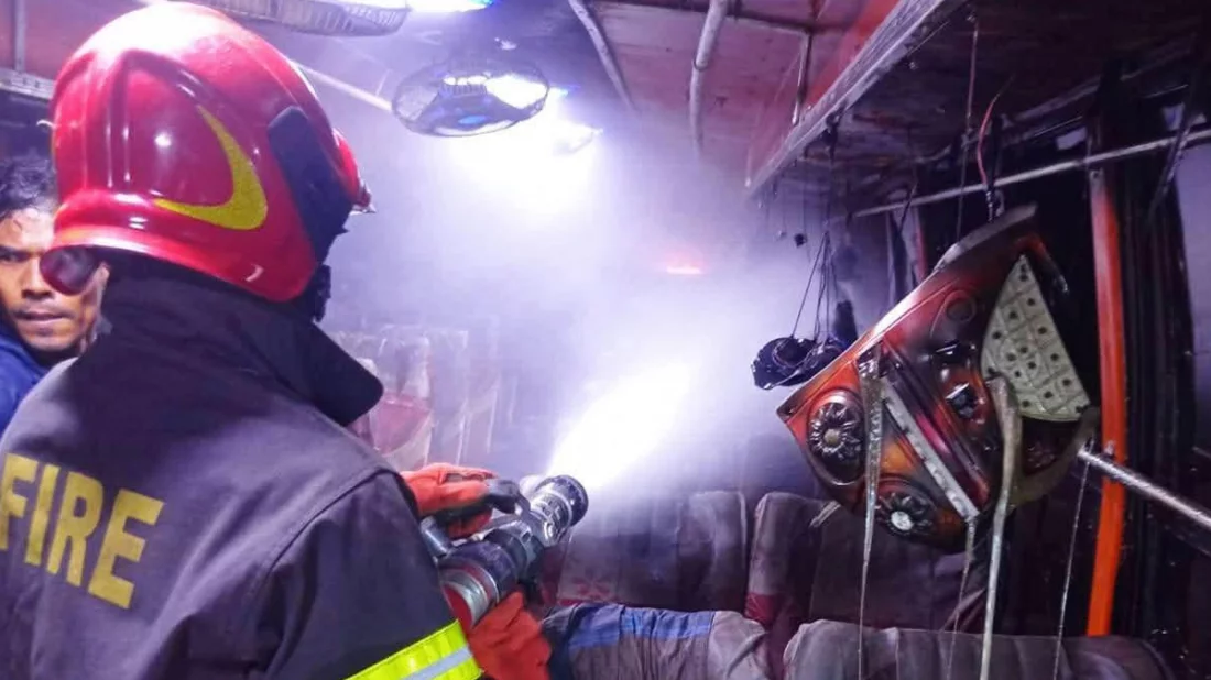 বাসস্ট্যান্ডে দাঁড়িয়ে থাকা তিন বাসে আগুন চাঁদপুরে