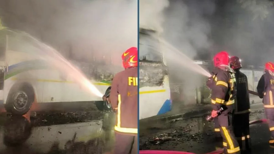 ড্যাফোডিল বিশ্ববিদ্যালয়ের দুই বাসে আগুন মিরপুরে গভীর রাতে