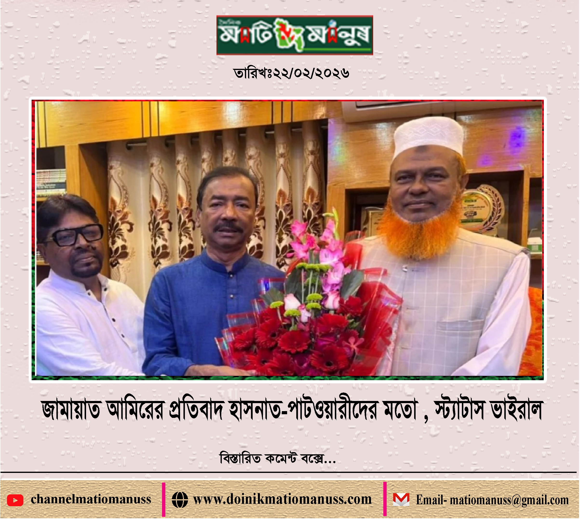 রবিবার, ২২ ফেব্রুয়ারী ২০২৬, ১০ ফাল্গুন ১৪৩২ বঙ্গাব্দ